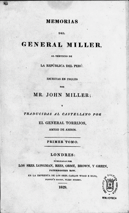 Miller, J. ([1829] 1997). Memorias del general Guillermo Miller. (J. M. Torrijos, Trad.). Buenos Aires: Editorial Emecé, pp. 124-125).