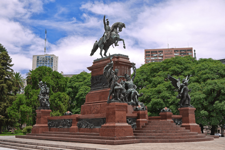 Un claro ejemplo de esto ocurrió al conmemorarse el centenario del nacimiento de San Martín, en 1878, cuando el lugar que alguna vez albergó la Plaza de Toros del Retiro fue rebautizado como Plaza San Martín en su honor. Este cambio no fue un simple gesto simbólico; fue una declaración de principios que subrayó el significado transformador del sitio. Pasó de ser un espacio dedicado al entretenimiento y a los espectáculos taurinos —una herencia de la dominación española— a convertirse en un lugar emblemático de la lucha por la independencia. En ese terreno, San Martín forjó el Regimiento de Granaderos a Caballo, marcando el inicio de un capítulo que trascendería las fronteras del continente. El cambio de nombre no solo honró al Padre de la Patria, sino que también rescató el simbolismo del lugar como una arena de transformación: de circo a campo de batalla, de espectáculo a historia, de pasado impuesto a legado propio.