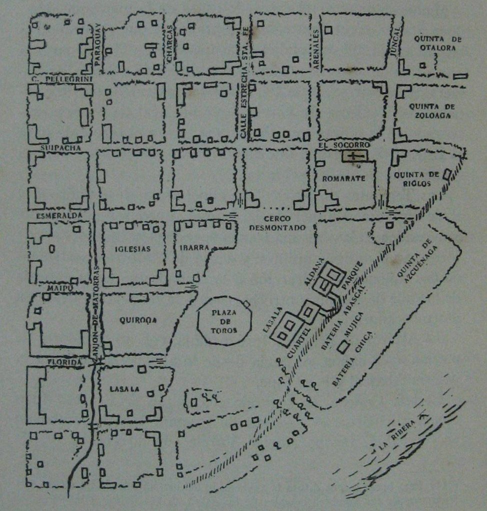 «Inicialmente se les dio como cuartel lo que había quedado de la Ranchería pero a pedido de San Martín se los trasladó al Retiro (sobre la actual Plaza San Martín porteña), al edificio que había ocupado la plaza de toros de Buenos Aires«.