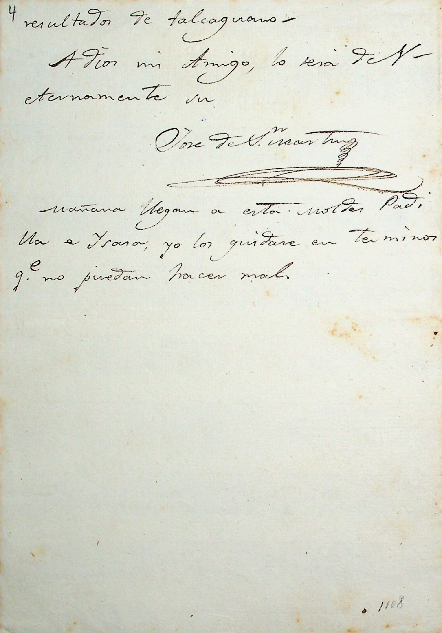 «Sigo mortificado con mis achaques – pero no hay otro advitrio q.e trabajar hasta q.e ([se]) demos fin a nuestra grande obra.»