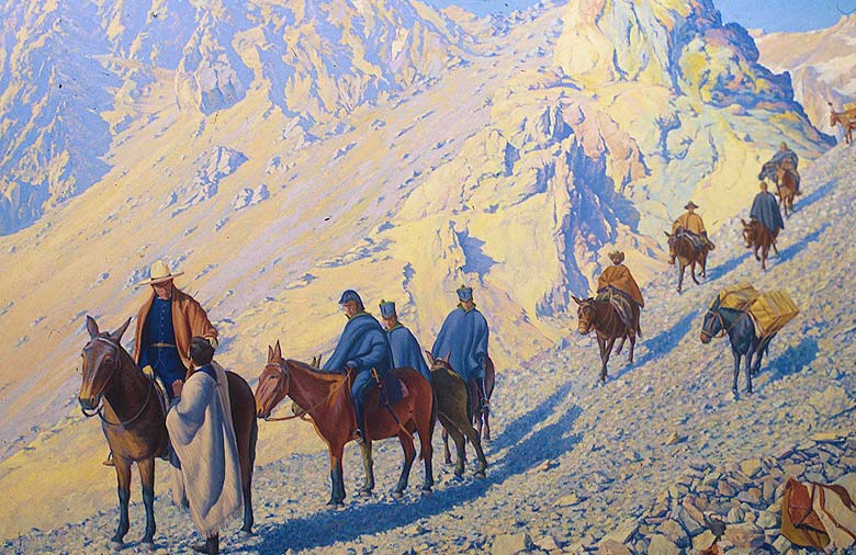 Efectivamente, sosteniéndolo, montó en la mula y emprendieron el descenso de los Andes, en que se fatigó bastante por la posición inclinada hacia adelante de la cabalgadura.