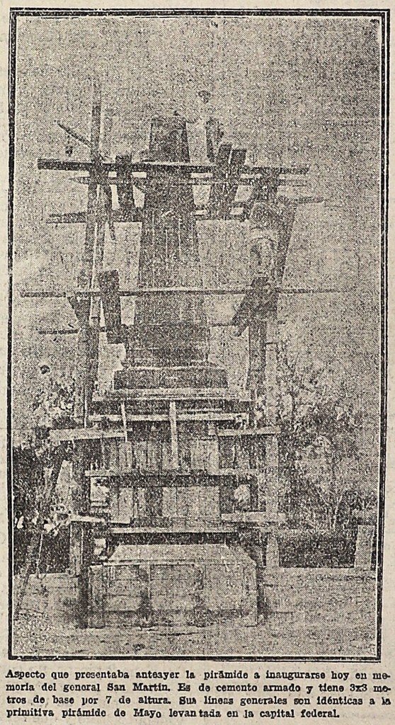 A continuación, se enumeran las publicaciones del diario Los Andes y La Tribuna (LT) que documentan el proceso de colocación, construcción e inauguración de la Pirámide en homenaje al General San Martín en el distrito de Barriales: