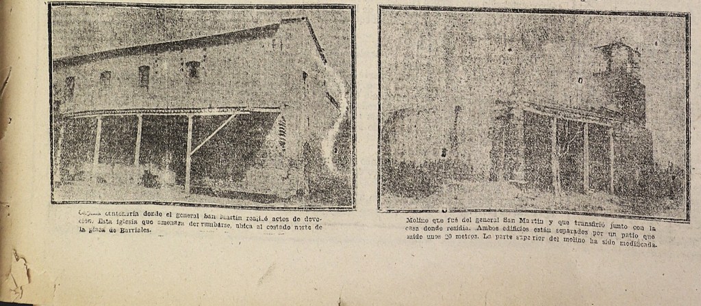 Por último, cabe señalar un error en la edición del diario en la identificación de las imágenes: se intercambiaron los pies de foto, adjudicando la imagen del Molino a la Iglesia (Nuestra Señora de la Luz, imagen que la oratoria popular dice que el General San Martín dejase en los Barriales, y luego dió origen a la Capilla) y viceversa. No obstante, resulta especialmente valiosa la fotografía que muestra la construcción en proceso de la pirámide, documento gráfico de gran relevancia histórica.